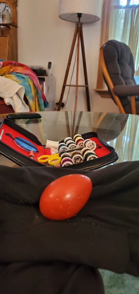 And in another lifetime you’d be here fixing Clara’s pants. You’re still here, but not. So I am fixing these pants, with your darning egg Dad let me take home with me a few trips ago. Saturdays are for fixing things that you didn’t have time or energy for during the week. I watched you do that.